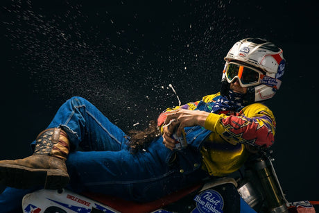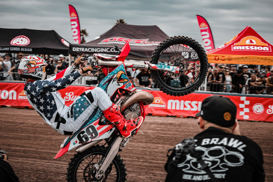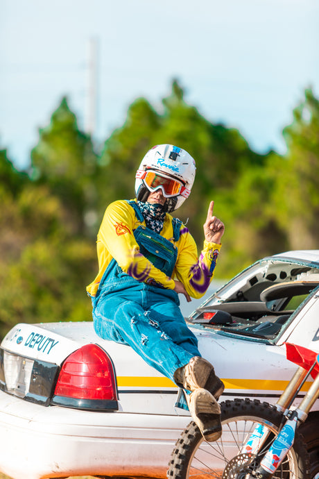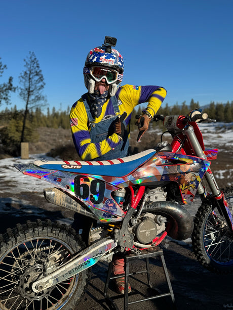 Ronnie Uncle Mac got his start in small town Oklahoma. Always known for riding two strokes and his impeccable style on a motorbike. In 2017 the world discovered who Ronnie Mac was when he almost won Red Bull Straight Rhythm but ultimately ended up crashing in the final round. His performance gained him notoriety not only world wide but in the tight knit racing arena. Ronnie proving that the age of your bike is only a number - rides a 1988 CR 250, otherwise known as the Screamin Eagle. She’s always equipped with cut fenders and number 69 across the number plate. Paired with the Eagles Scream and Ronnie’s dream