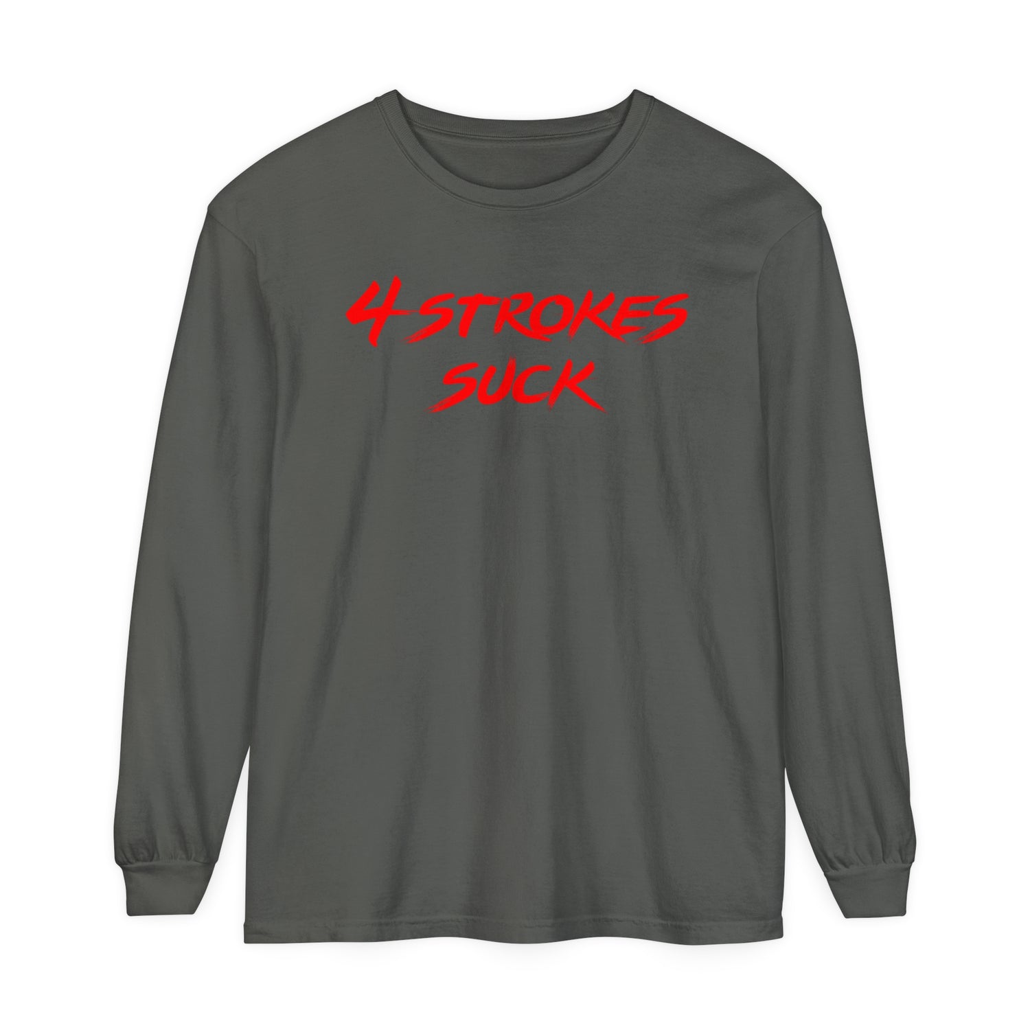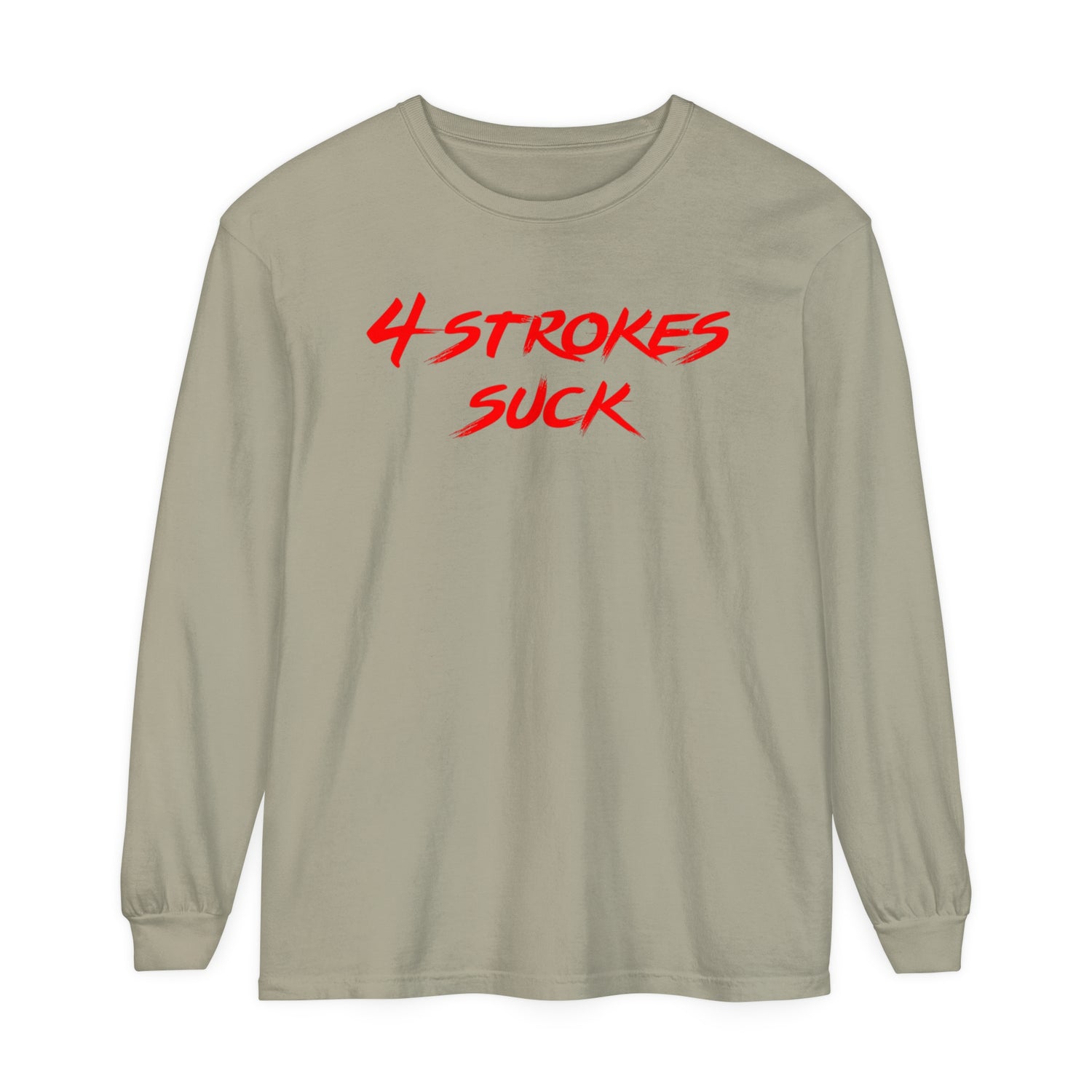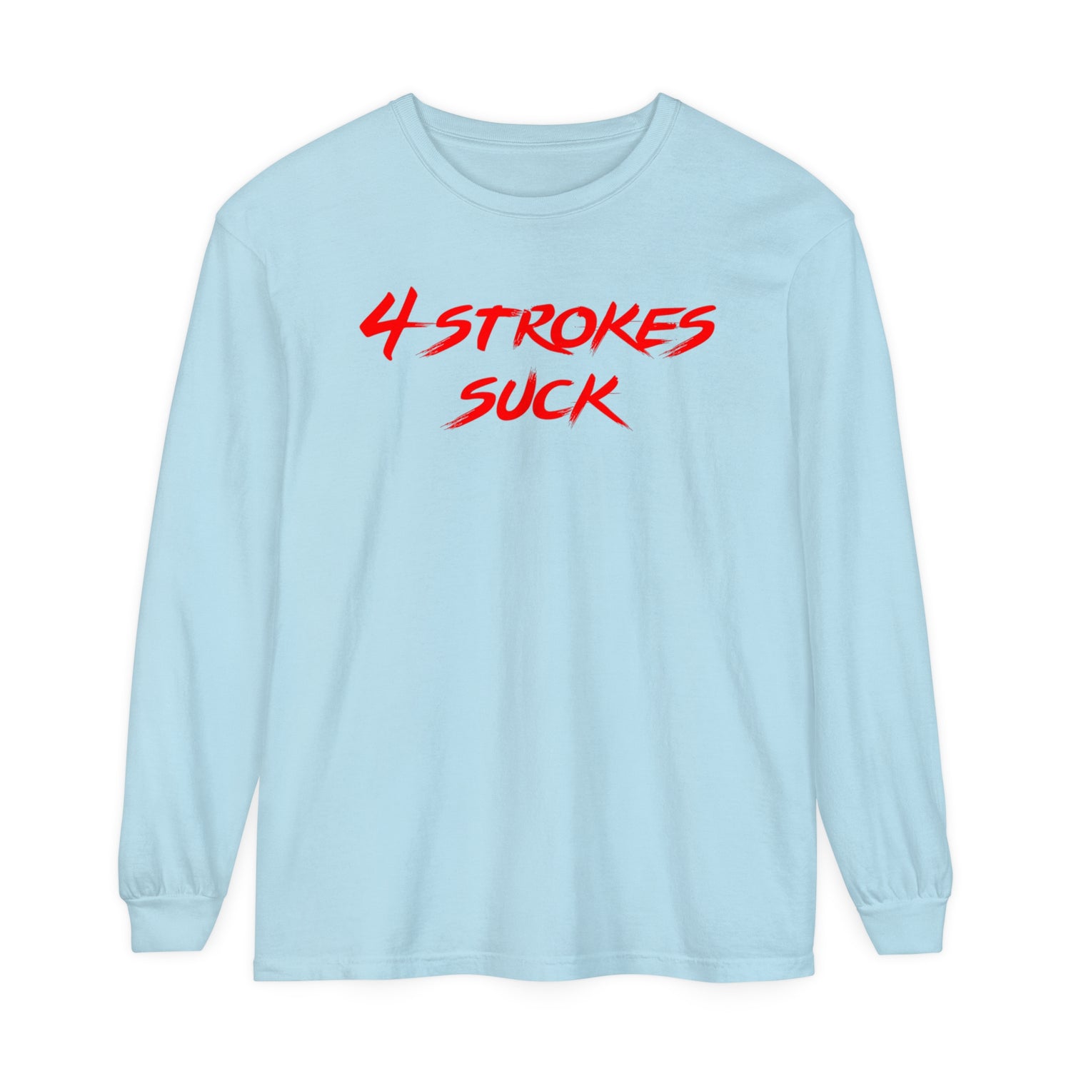 Declare your allegiance to the 2-stroke engine with our bold "4 Strokes Suck" long sleeve shirt, inspired by none other than Uncle Ronnie Mac. This shirt is a statement piece.