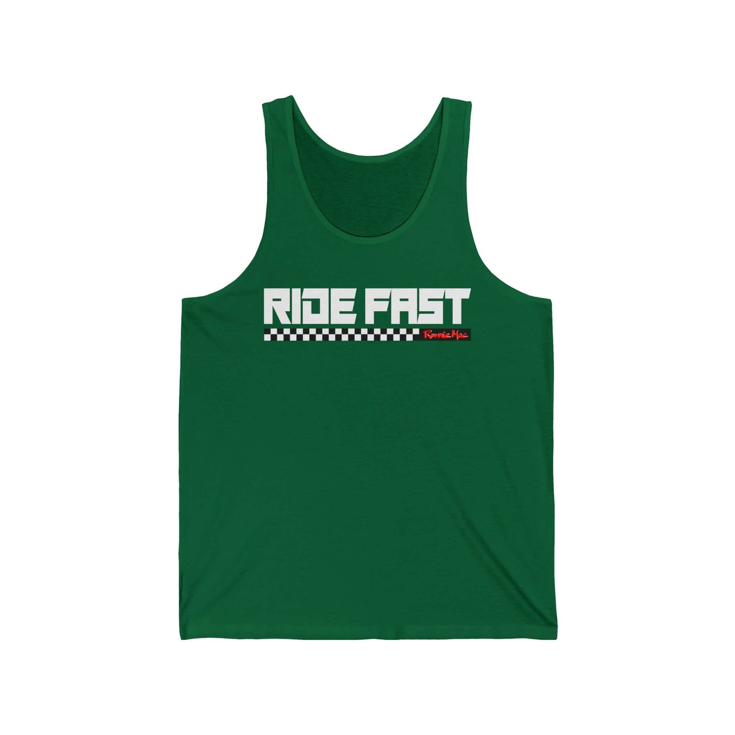 Featuring bold "Ride Fast" text with a block underline in a checkered pattern, this tank top is as eye-catching as it is stylish. It's the perfect way to show off your love for high-speed action and fearless riding.