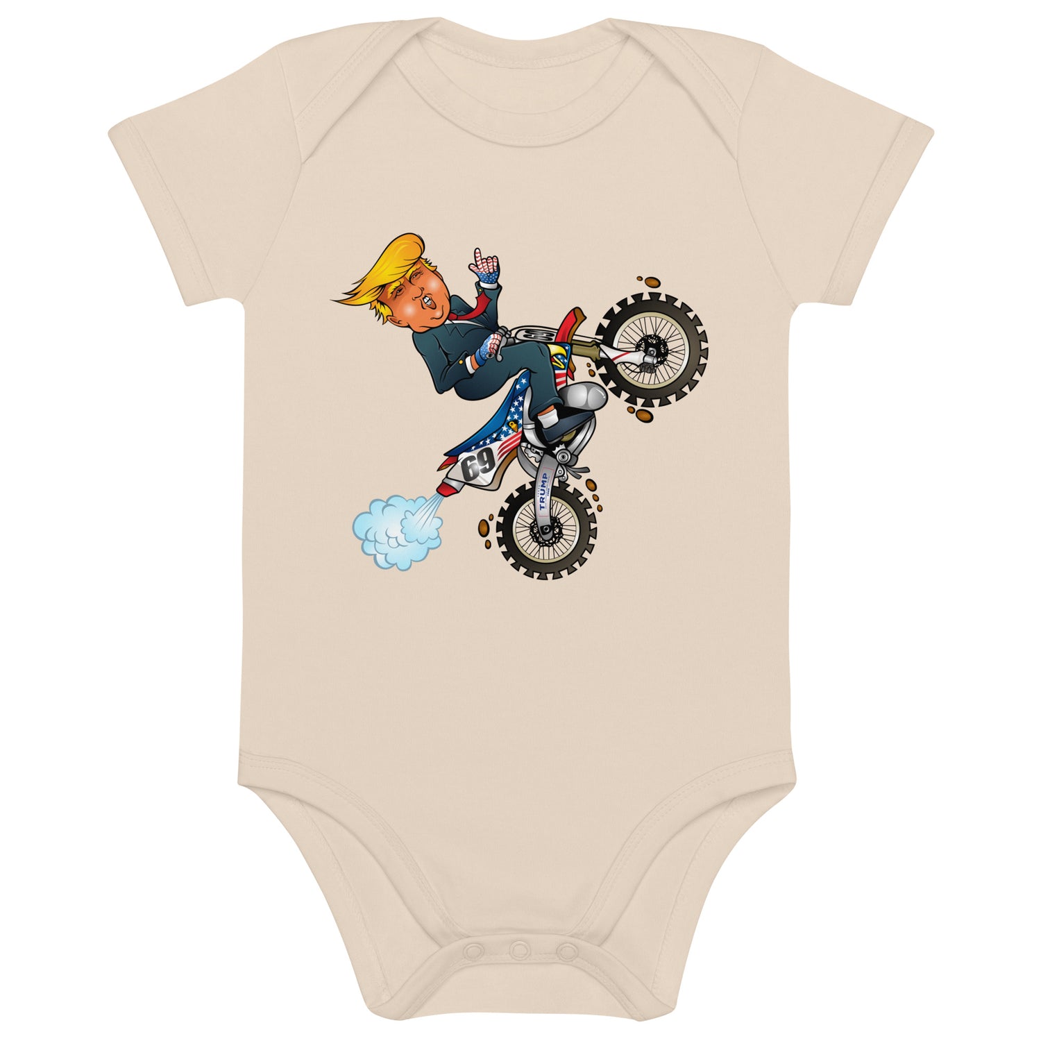 Alright, mini moto maniacs, it’s time to gear up because the TRUMP Moto Organic Cotton Onesie is here to get your littlest rider revving straight outta the crib! This ain’t just a onesie—it’s a sustainable, dirt-slingin’, freedom-lovin’ baby essential that’s as soft as a berm on race day and as stretchy as your best whip tricks. Crafted from 100% certified organic cotton, this bodysuit delivers all-day comfort for your future throttle-twistin’ legend, AND it’s easy on Mama Earth. Double win, baby!